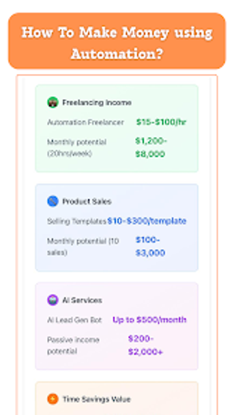 Uygulama, gerçek dünya senaryoları ile kullanıcıların veri toplama, bildirim gönderme, rapor oluşturma gibi işlemleri otomatikleştirmesine yardımcı olmaktadır. Adım adım rehberler, kullanıcıların her bir iş akışını anlamasını kolaylaştırmak için etkileşimli sayfalar sunmaktadır. Ayrıca, yaygın otomasyon problemleri için çözüm önerileri ve küçük işletmelere yönelik akıllı otomasyon fikirleri de bulunmaktadır. Temiz bir tasarım ile dikkat dağıtmadan öğrenme imkanı sunan bu rehber, n8n'in potansiyelini açığa çıkarmak için idealdir.